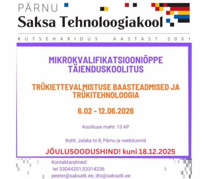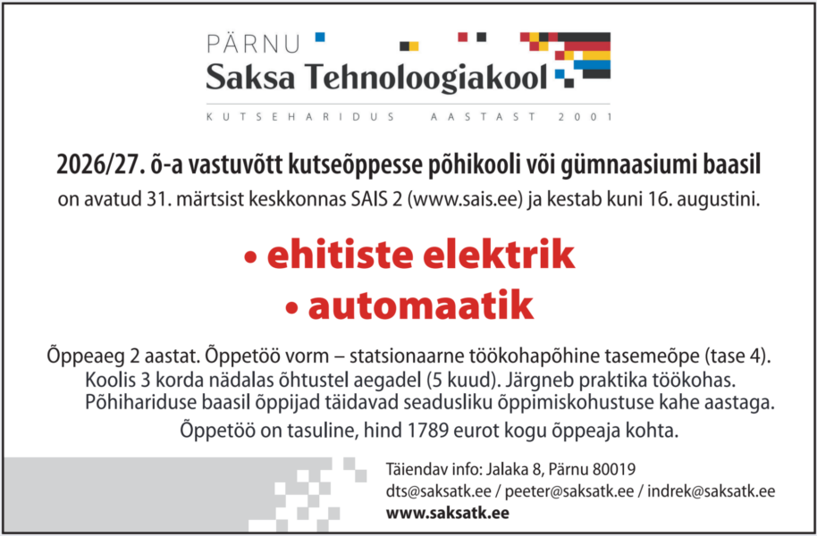 Vaatamata hariduselu uutele suundumustele algas 1. oktoobril 14 õppuri jaoks elektrike eriala 2- aastane tasemeõpe. Õpe on teenustasu eest, kuid võimaldab kasutada ka õppelaenu ja osaleda soovi korral Erasmus+ praktikal. […]
